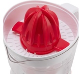 Соковыжималка для цитрусовых, Объем 0,7 л., Мощность 40 Вт., 2 сменные насадки-конуса для фруктов разного размера, Двустороннее вращение насадки, Прозрачная крышка для защиты от пыли, Прорезиненные ножки, Легко разбирать и мыть