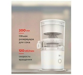 Соковыжималка, Портативная. Использование в любом месте и в любое время, Мощность 45 Вт, USB кабель в комплекте, Подходит для любых фруктов и ягод, Простое управление, Объем кувшина 0.2 л, Аккумулятор Li-ion 1500 мАч, 7.4 В, Время непрерывной работы до 90