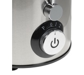 Соковыжималка центробежная. Мощность 700 Вт, питание 220-240В, 50Гц, металлический корпус и фильтр, объем резервуара сока 0,6 л., 2 скорости + импульный режим, широка я загрузочная горловина - 65мм, объем контейнера для жмыха 1л, сепаратор для пены, функция "Капля-стоп, прорезиненные ножки, защита от перегрева и перегрузки, блокировка двигателя при открытой крышке, легкая очистка