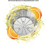 Соковыжималка шнековая, Мощность 200 Вт, Холодный отжим, Сохраняет до 85% сока, Можно отжимать любые овощи, фрукты, ягоды, зелень и корнеплоды, Сверхширокое загрузочное отверстие 75 мм, Система капля-стоп, Функция реверса, До 65 об/мин, Благодаря низким оборотам сок не нагревается и сохраняет все свои полезные свойства и витамины, Отсутствие термической обработки и окисления в процессе отжима позволяет сохранить до 100% витаминов и минералов в соке, Кувшин для сока 0.8 л, Резервуар для жмыха 0.6 л, Cетка из нержавеющей стали, Автоматический выброс мякоти, Система прямой подачи сока, Защита от перегрузки и перегрева, Защита от случайного включения, Низкий уровень шума, Нескользящие ножки, Длина шнура электропитания 0.9 м, Напряжение сети 220-240 В, 50 Гц