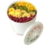 (ШхГхВ) 30,5х30,5х39,5см.5 поддонов для овощей и фруктов.Форма корпуса цилиндрическая.Диаметр поддона для овощей и фруктов 305мм.Полезный объем 15л.Мощность нагревательного элемента 500Вт.Мощность вентилятора 16Вт.Регулировка температуры 30-70С (в нижнем поддоне).Степень защиты от доступа воды IP20.Вес 3,1кг.