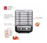 Мощность: 500 Вт; Количество уровней: 5; Регулировка температуры: от 30 до 70 °С; Ширина поддона: 30 см; Глубина поддона: 30 см; Нагрузка на поддон до: 1 кг; Возможность сушки: грибов, овощей, трав, фруктов. Габариты упаковки (ед) ДхШхВ 0.32x0.33x0.42 м. Вес упаковки (ед) 3.6 кг. Всего за несколько часов в домашних условиях Вы можете произвести экологически чистую сушку: плодов, ягод, овощей, грибов, лекарственных растений, сушка и вяление рыбы. Позволяет загрузить до 5-ти килограмм сырья.