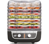 Вращение поддонов для оптимальной циркуляции воздуха Максимальная мощность 250 Вт Объем 9 литров 5 прозрачных поддонов Размер поддона 32x32 см Регулировка температуры (от 35 до 70 °С)