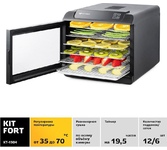 Мощность: 800. Возможность сушки фруктов: есть. Возможность сушки овощей: есть. Возможность сушки грибов: есть. Возможность сушки трав: есть. Количество поддонов: 9. Ширина поддона: 37. Глубина поддона: 29.5. Комплектация: Сушилка – 1 шт. Поддоны для сушки — 8 шт. Поддон для жидкости — 1 шт. Руководство по эксплуатации – 1 шт. Коллекционный магнит – 1 шт (опционально). Габариты упаковки (ед) ДхШхВ: 0.56x0.55x0.44. Вес упаковки (ед): 8.9. Гарантия: 12 мес.. Регулировка температуры: от 35 до 75 °С. Цвет: черный. Ширина поддона: 37 см. Возможность сушки: грибов, овощей, трав, фруктов. Глубина поддона: 29.5 см. Мощность: 800 Вт. Регулировка температуры: от 35 до 75 °С