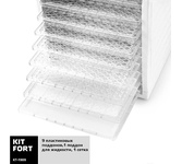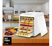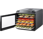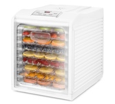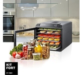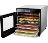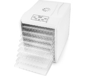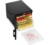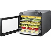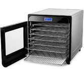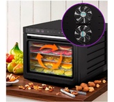Дегидратор Libhof FDA-10 представляет собой эффективный и практичный инструмент для сохранения вкуса и витаминного состава овощей и фруктов. Дегидратор Libhof FDA-10 имеет объем в 25 л и оборудована 10 съёмными поддонами из нержавеющей стали. Горизонтальный обдув обеспечивает равномерное распределение горячего воздуха внутри камеры и, как следствие, высокое качество сушки продуктов. Стоит отметить, что этот дегидратор позволяет готовить вкусную и полезную пастилу из фруктов и овощей, а три дополнительных смотровых окна позволяют визуально контролировать весь процесс поэтапно. Управление дегидратором осуществляется при помощи электронного модуля, а мощность достигает 850 В. Модель уже имеет 10 встроенных автоматических программ, помимо этого можно вручную настраивать температуру в диапазоне от 35 до 75 градусов, что дает возможность выбирать оптимальный режим сушки для различных видов продуктов. Безопасность использования устройства обеспечивается благодаря наличию защиты от перегрева и встроенного таймера, ко