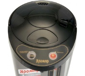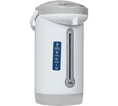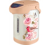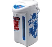 Термопот.Объем: 5л.Мощность: 1100Вт. 3 режима дозировки воды: ручной/ автоматический/ электрический.Пластиковый корпус.Электрическая помпа. Внутренняя емкость из нержавеющей стали. Поворот корпуса на 360°. Световые индикаторы.Шкала уровня воды.Съемная крышка. Съемный сетевой шнур режим поддержания температуры воды. Двойная защита от перегрева. Мощность в режиме поддержания температуры: 35Вт. Сеть: 220-240В, 50гц