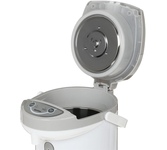 Термопот; Общий объём 3,8л; Полезный объём: 3л; Мощность: 1200Вт, LCD сенсорный дисплей; Колба из стекла; Кипячение; Функция "чистая вода"; Поддержание температуры; Блокировка кнопок; Защита от перегрева и включения без воды; Цвет: белый; Длина шнура: 0,85м.