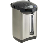 Параметры Объем 4,5 л Номинальная потребляемая мощность 900 Вт Мощность в режиме поддержания температуры воды 30 Вт Описание Чайник-термос электрический предназначен для нагрева воды и поддержания ее температуры в бытовых и аналогичных условиях Корпус и внутренняя ёмкость из высококачественной нержавеющей стали Вращение корпуса на основании на 360° Шкала уровня воды Световые индикаторы работы Съёмный шнур электропитания Съёмная крышка для удобства очистки 3 способа подачи воды: - ручной - автоматический - электрический Режим поддержания температуры воды Функция повторного кипячения Блокировка ручной помпы от случайного нажатия Блокировка включения без воды Автоматическое отключение при закипании Двойная защита от перегрева