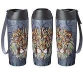 LR04-02 термос LARA - 1.00л, ручка, кнопка, ремешок, двойные стенки, крышка-стаканчик, нерж сталь