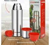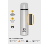 AGNESS ТЕРМОС С ШИРОКИМ ГОРЛОМ 1000 МЛ.КОЛБА НЕРЖ.СТАЛЬ (КОР=12ШТ.) 910-098
