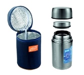 Термос с широкой горловиной, суповой объем: 1 л корпус из стали сохраняет тепло до 16 ч особенности: вакуумный, крышка-чашка чехол вес: 750 г