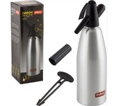Предназначен для приготовления газированной воды, напитков и коктейлей. С помощью сифона для газирования воды можно быстро и легко готовить натуральные и очень вкусные напитки и коктейли. Стильный дизайн и актуальные цвета делают наши сифоны незаменимыми на любой кухне: в квартире и в загородном доме, на даче и в офисе. Материал: алюминий, пластмасса Емкость: 1,0 л