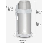 Термос универсальный объем: 0.8 л корпус из стали сохраняет тепло до 19 ч особенности: вакуумный, ручка на корпусе, крышка-чашка вес: 780 г