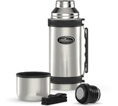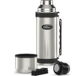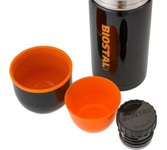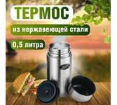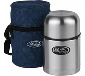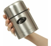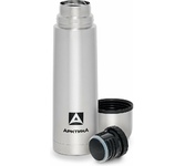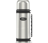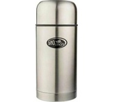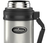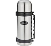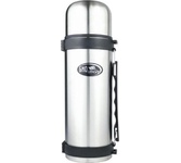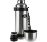 Термос универсальный 1.0 л. С удобной ручкой и ремешком для переноски. С крышкой-чашкой и дополнительной пластиковой чашкой. Изготовлен из высококачественной нерж. стали.