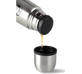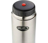 Термос с узкой горловиной и ручкой, объем: 1 л, корпус из стали, сохраняет тепло до 19 ч, особенности: вакуумный, кнопка-клапан, ручка на корпусе, крышка-чашка вес: 740 г