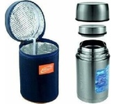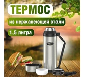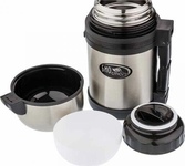 Термос с широкой горловиной, суповой объем: 1 л корпус из стали сохраняет тепло до 16 ч особенности: вакуумный, крышка-чашка чехол вес: 750 г