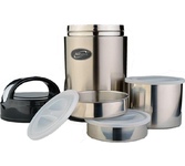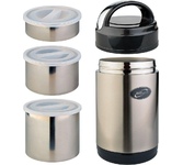 Вместительный и в тоже время достаточно компактный ланч-набор серии JBY знаменитого производителя THERMOS незаменим для сторонников правильного питания и любителей домашней пищи. Для того, чтобы взять с собой полноценный обед, в наборе предусмотрен термос с широким горлышком, способный длительно сохранять содержимое горячим или холодным за счет вакуумной термоизоляции. В нём можно хранить как твёрдую, так и жидкую пищу, т.к. термос абсолютно герметичен. Объём термоса (400 мл) рассчитан на 2 порции или 2 приёма пищи. Закуски, салаты, гарниры или десерты можно поместить в ланч-бокс такого же объема, как и термос - 400 мл.