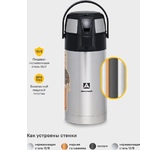 Термос с пневмонасосом, глухая пробка с термоизолятором, кнобка для налива,удобная ручка