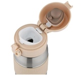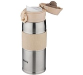 Термокружка Цвет: бежевый Силиконовая вставка на корпусе, силиконовая крышка Эргономичный дизайн крышки позволяет легко открывать её одной рукой Термокружка имеет оптимальный размер. Её удобно держать в руке Плотно закрывающаяся крышка позволит надолго сохранить температуру напитка, специальный фиксатор не позволит крышке случайно открыться. Объем: 350 мл Двойные вакуумные стенки из нержавеющей стали Материал: нержавеющая сталь (201), силикон, полипропилен