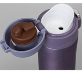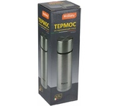 Колба и корпус из нержавеющей стали с двойными стенками. Герметичный клапан (пробка) с кнопкой. В комплекте 2 чашки. Упаковка - картонная коробка