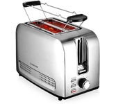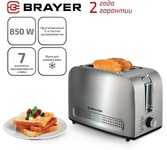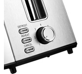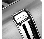Тостер, Мощность 850 Вт, 7 степеней поджаривания, Режимы: подогрев, разморозка, поджаривание одного тоста, Выбор типа изделия: хлеб, бейгл, вафли, выпечка, английский маффин, LED дисплей, Сенсорное управление, Съемный лоток для сбора крошек, Автоматическое центрирование тостов, Индикация включения и режима работы, Автоматическое отключение, Корпус из нержавеющей стали, Отсек для хранения электрошнура, Напряжение сети: 220-240 В, 50-60 Гц
