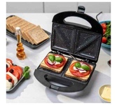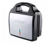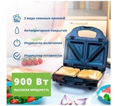 Мощность 900 Вт; антипригарное покрытие на 4 сендвича; возможность работы в вертикальном состоянии; 3 набора съёмных пластинЖ для сэндвичей, для вафлей, для гриля