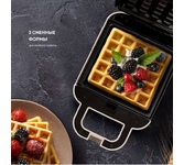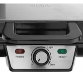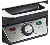 Мощность 920 Вт. Тип управления механическое. Покрытие рабочих частей антипригарное. Форма нагревательных частей прямоугольная. Формы для готовки пластины для вафель. Количество отделений в пластине для вафель 2. Регулировка температуры приготовления плавная. Индикатор включения есть. Индикатор нагрева есть. Материал корпуса нержавеющая сталь. Цвет серебристый и черный.
