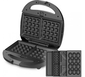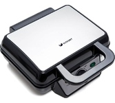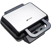 MultiChef, мощность: 800 Вт, многофункциональный прибор 4 в 1, 4 пары панелей в комплекте: гриль, венские вафли, сэндвич, орешки, антипригарное покрытие панелей Non-Stick PRO, равномерный нагрев, вертикальное хранение, отсек для хранения шнура, 2 индикатора работы: нагрева и питания, диапазон температур нагрева: 230 °С, ненагревающаяся ручка, противоскользящие ножки, длина шнура: 0.7 м, напряжение: 220-240 В, 50-60 Гц, защита от поражения электротоком: класс I