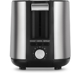 Тостер. Мощность: 850 вт, Материал корпуса: пластик, Количество тостов: 2, Количество отделений: 2, Регулировка степени обжаривания, Кнопка отмены, Функция размораживания, Функция подогрева, Поддон для крошек, Отсек для шнура, Решётка для подогрева булочек, Тип управления: механический, Термоизолированный корпус, Цвет: Черный/серебро.