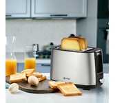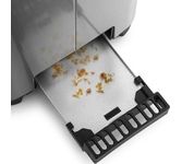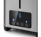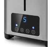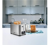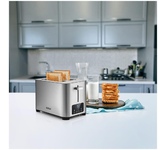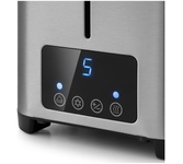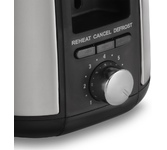 Управление электронное. Мощность 750-850 Вт. Дисплей есть. Количество отделений 2. Количество степеней обжаривания 7. Автоцентрирование тостов есть. Выдвижной (съемный) лоток для крошек есть. Подогрев готовых тостов есть. Разморозка и обжаривание есть. Длина сетевого шнура 0.75 м. Материал корпуса нержавеющая сталь/пластик.
