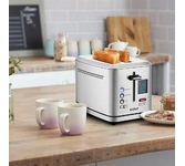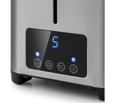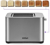 Потребляемая мощность, Вт: 1000 Вт, Количество отсеков: 2 тоста, Количество режимов поджаривания: 7 режимов, Съемный лоток для крошек: Да, Автоматическое центрирование тостов: Да, Тип управления (механический / электронный): Электронный, Кнопка отмены приготовления: Да