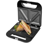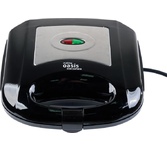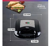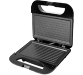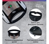Параметры электросети, В/Гц 220-240 / 50 Мощность, Вт 800 Цвет черный Материал корпуса бакелит Количество съемных панелей 1 Размер изделия, мм 220?70?210 Антипригарное покрытие Автоматический температурный контроль Замок для фиксации крышки Индикаторы нагрева и сети Теплоизолированные ручки Противоскользящие ножки