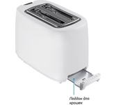 Тостер, мощность 700 Вт, 2 ломтика, размер тоста : 100*100 мм, 5 степеней поджаривания, термоизолированный корпус, выдвижной поддон для крошек, отсек для хранения сетевого шнура, цвет: белый
