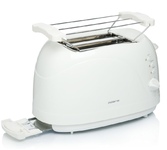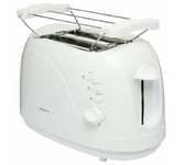 Тостер на 2 ломтика, мощность 900 Вт, 7 степеней поджаривания тостов, функция подогрева, функция размораживания, функция автоматического отключения, кнопка «Отмена», решетка для подогрева булочек, поддон для сбора крошек, термоизолированный пластиковый корпус, нескользящие резиновые ножки, отсек для компактного хранения шнура