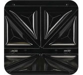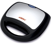 Мощность 750 Вт. Материал корпуса - термостойкий пластик, декорированный хромир. сталью. Антипригар. покрытие сэндвичных форм. Сэндвичные формы на 4 ломтика, с выступающими бортиками, препятствующими вытеканию начинки. Двухпозиционный фиксатор крышки.