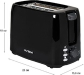Мощность: 700 вт. Автоматическое центрирование тостов. Кнопка отмены. Кол-во отделений: 2. Количество тостов: 2. Материал корпуса: пластик. Регулировка степени обжаривания. Термоизолированный корпус. Тип управления: механический. Функция подогрева. Функция размораживания.