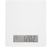 Весы кухонные электронные. Платформа из закаленного стекла с сенсорными кнопками управления. Большой LCD дисплей 141?41 мм. Функции: часы/таймер/температура и влажность окружающей среды. Точность измерения 1 грамм, максимальный груз 5 кг. Питание от 4 батареек тип AAA.