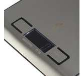 Металлическая поверхность 18*13,7см LCD дисплей с подсветкой Максимальная нагрузка 5 кг Выбор единицы измерения: грамм, фунт, унция, миллилитр Цена деления 1 грамм Функция "Тара" Проризиненные ножки Автоотключение Индикатор перегрузки и заряда батареи Питание от 2*ААА (не входят в комплект) Гарантия 2 года