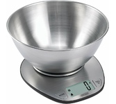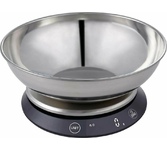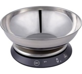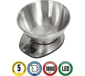 Кухонные весы с чашей для продуктов с ЖК-дисплеем обеспечивают точное взвешивание продуктов массой до 5 килограммов с точностью до 1 грамма и способны работать в различных единицах измерения (г, мл, унция, фунт). Функция «ТАРА» позволяет не учитывать массу посуды при взвешивании продуктов. 1,5-литровая чаша из нержавеющей стали со шкалой от 0,5 до 1,5 литров с шагом 0,5 л поможет более точно определить объем сыпучих и жидких объектов. На дне чаши имеется нескользящее покрытие, благодаря которому чаша не скользит и не царапает поверхность весов. Размеры: 185*185*18мм Размер ЖК-дисплея: 41*18мм Точность: 2%+1г Максимальная вместимость: 5кг Подсветка дисплея Нержавеющая сталь Датчик высокой точности Защита от перегрузки Индикатор разряда батареи Автоматическое или ручное отключение