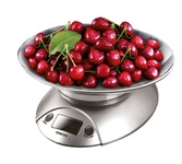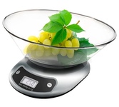 Кухонные весы. Измерение массы и объёма: воды, молока, муки, круп и других сыпучих и жидких продуктов. LCD дисплей. Индикация низкого уровня батареи. Функция «Тара» – последовательное взвешивание. Весы работают от 3 батареек типа 1,5 V AAA (включены в комплектацию). До 5 кг с точностью до 1 г. Корпус весов и чаша из нержавеющей стали. Чаша с мерной шкалой внутри. Выбор единицы измерения: граммы, фунты и унции, миллилитры.
