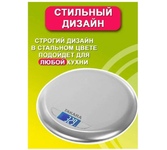 Кухонные весы. До 5 кг с точностью до 1 г. Выбор единицы измерения: граммы, фунты и унции, миллилитры. Весы работают от 3 батареек Типа 1,5 V AAA (включены в комплектацию). Индикация заряда. Измерение объёма жидкостей: вода, молоко. Стальная поверхность весов. Автоматическое и ручное выключение. Стильный дизайн.