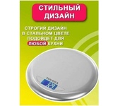 Кухонные электронные весы LCD дисплей 58x27 мм Оборудованы датчиком высокой точности Материал корпуса - металл Стальная чаша объемом 1.8 л Максимальный вес: 5 кг Функция "Вес Тары" Определение объема молока и воды Индикация разряда батареи Индикация перегрузки Автоматическое отключение