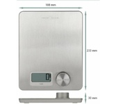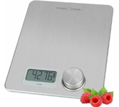 Весы кухонные Profi Cook PC-KW 1263 Точные кухонные весы с платформой из нержавеющей стали Работают без использования батареек, выработка энергии поворотом ручки Большой ЖК-дисплей Единицы измерения: г, мл, мл, унция Взвешивание до 5 кг (с шагом 1 г) Автоматическое отключение Индикатор низкого заряда и перегрузки Тарокомпенсация Прорезиненные ножки Характеристики: Максимальный вес (кг): 5 Точность взвешивания (г): 1 Материал платформы: нержавеющая сталь Цвет: нержавеющая сталь Тарокомпенсация: да Автоматическое отключение
