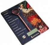 Параметры Диапазон измерений 5-5000 г Интервал измерений 1 г Размер весов 20?14,5?2см Описание Платформа из закаленного прочного стекла LCD-дисплей Индикатор уровня заряда батареи и перегрузки весов Петелька для подвешивания Противоскользящие ножки Функция измерения объема жидкости: молоко, вода Функция сброса веса тары и обнуления позволяет последовательно взвешивать ингредиенты блюда, не учитывая массу посуды Выбор единицы измерения Автообнуление/автоотключение Электропитание: 2?1,5 В батареи типа R03 ААА (в комплекте) Упаковка: цветная коробка