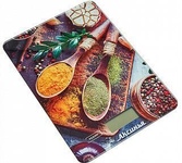Предельная масса взвешивания 5 кг. Точность взвешивания ± 1 г. Размер весов 20х18х1,5см. Платформа из упрочненного стекла. LCD дисплей. Индикатор уровня заряда батареи и перегрузки весов. Функция измерения объема жидкости: молоко, вода. Функция сброса веса тары и обнуления позволяет последовательно взвешивать ингредиенты блюда, не учитывая массу посуды. Выбор единицы измерения. Автообнуление/автоотключение. Электропитание: 2х1,5 В батарея типа ААА (в комплекте).