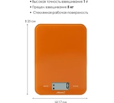 ATLANTA ATH-6197 (ORANGE) Стеклянная рабочая поверхность, максимальный вес 5 кг с шагом 1 г, LED-дисплей. ПОЛНОСТЬЮ ЭЛЕКТРОННЫЙ Полностью электронный принцип взвешивания на высокоточных сенсорах гарантирует точность измерения веса, а благодаря отсутствию механических механизмов, весы прослужат многие годы