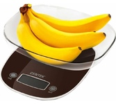Электронные кухонные весы с платформой для взвешивания из нержавеющей стали 18х21.2 см измеряют массу овощей, мяса, рыбы, специй, пряностей и круп с точностью о 0.001 кг. На устройстве можно задать удобную для вас единицу измерения: в килограммах, граммах или фунтах. Функция тарирования позволяет при взвешивании не учитывать массу емкости, в которой лежат продукты. Максимально допустимая масса взвешивания — 7 кг. При перевесе загорится индикатор перегруза. На LED-дисплее 12х2.5 мм с подсветкой расположен индикатор разряда батареи. Кухонные весы работают от 2 батареек типа "ААА" (в комплекте).