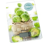 Кухонные весы. Экстра максимальный вес до 15 кг. Точность до 1 г. Светодиодный дисплей с белой подсветкой. Выбор единицы измерения: граммы, фунты и унции, миллилитры. Измерение объема жидкостей: вода, молоко. Весы работают от 3 батареек типа 1,5 V ААА (включены в комплектацию). Индикация заряда. Автовключение и выключение.