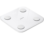 Тип: электронные. Диагностические весы: да. Материал платформы: стекло. Максимальная нагрузка: 180. Погрешность измерения: 200. Ячейки памяти: 10. Цена деления: 50. Автоматическое включение/отключение: есть. Умные весы: да. Габариты упаковки (ед) ДхШхВ: 0.33x0.325x0.043. Вес упаковки (ед): 1.15. Страна производства: Китай. Мобильное приложение: Feelfit. Поддержка операционных систем: Android, iOS. Синхронизация со смартфоном: Bluetooth. Гарантия: 12 мес.. Питание: 3 х AAA. Цвет: белый. Размеры (ШхГхТ): 280 х 280 х 25 мм. Конструктивные особенности: прорезиненные ножки. Дополнительные измерения параметров тела: возраст тела, определение доли воды, определение доли жировой ткани, определение доли костной ткани, определение доли мышечной ткани, расчет ИМТ. Индикация: заряда батареи, перегрузки. Единицы измерения: килограммы, фунты. Тип: электронные, диагностические. Поверхность: стекло. Ячеек памяти: 10. Максимальная нагрузка: 180 кг. Цвет: белый. Погрешность измерения: 200 г. Элементы питания: 3 х AAA
