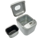 Хлебопечка Мощность 550 Вт Размер буханки 700/900 г 13 программ приготовления: 1. Основной режим 2. Быстрый хлеб I 3. Французский хлеб 4. Быстрый хлеб II 5. Цельнозерновой хлеб 6. Кекс/Пирог 7. Тесто 8. Выпекание 9. Хлеб для сэндвичей 10. Джем 11. Вымешивание теста 12. Безглютеновый хлеб 13. Пекарь Выбор цвета корочки: светлая, средняя, темная Чаша с антипригарным покрытием Окно для наблюдения за процессом приготовления LED дисплей В комплекте: мерный стаканчик, мерная ложка, крючок Таймер отсрочки запуска до 13 часов Функция памяти на 10 минут Поддержание температуры в течение 1 часа Напряжение: 220-240 В, 50-60 Гц Состав (материал): пластмасса, металл
